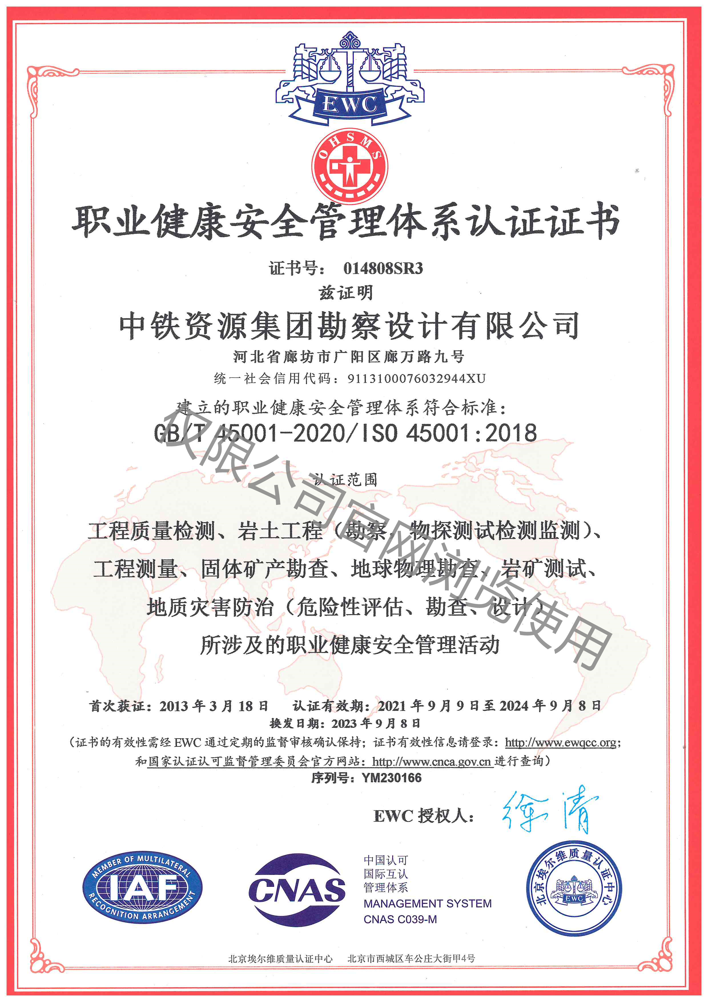 職業(yè)健康安全管理體系認(rèn)證證書