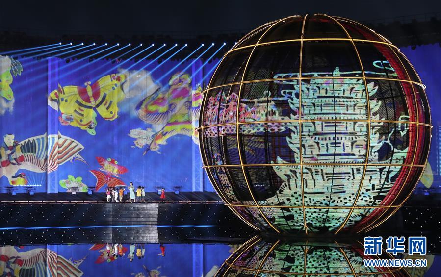 這是青島舉行的《有朋自遠(yuǎn)方來(lái)》燈光焰火藝術(shù)表演(6月9日攝)。新華社記者謝環(huán)馳攝