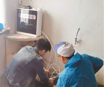 工作人員在內(nèi)蒙古巴林右旗牧區(qū)現(xiàn)場(chǎng)調(diào)試納米凈水器。