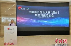圖為2018(第四屆)中國海歸創(chuàng)業(yè)大賽(煙臺)項目對接洽談會啟動儀式,中國技術(shù)創(chuàng)業(yè)協(xié)會留學人員創(chuàng)業(yè)園聯(lián)盟副理事長兼秘書長郎靖致辭 周欣嬡 攝 第四屆中國海歸創(chuàng)業(yè)大賽落幕 助力海歸人