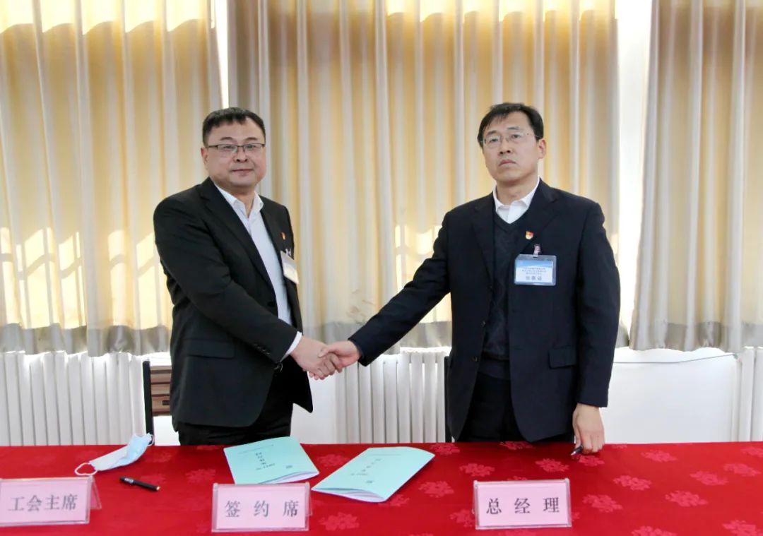 總經(jīng)理郭有勁、工會(huì)主席劉紅光分別代表公司行政、工會(huì)簽訂了《2022年集體合同》。郭有勁代表公司行政與各生產(chǎn)所負(fù)責(zé)人簽訂了《2022年生產(chǎn)經(jīng)營目標(biāo)責(zé)任書》《安全質(zhì)量環(huán)保目標(biāo)管理責(zé)任書》。